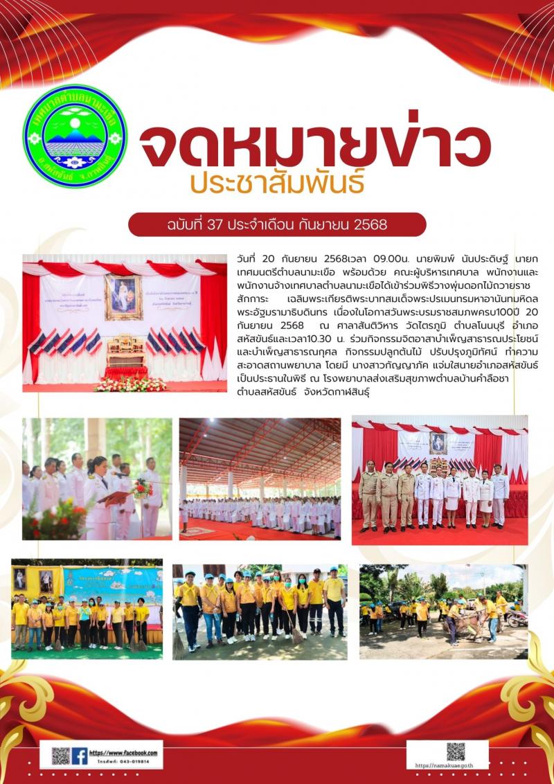 description วันที่ 20 กันยายน 2568 เวลา 09.00น. นายพิมพ์ นันประดิษฐ์ นายกเทศมนตรีตำบลนามะเขือ พร้อมด้วย คณะผู้บริหารเทศบาล พนักงานและพนักนักงานจ้างเทศบาลตำบลนามะเขือได้เข้าร่วมพิธีวางพุ่มดอกไม้ถวายราชสักการะเฉลิมพระเกียรติพระบาทสมเด็จพระปรเมนทรมหาอานันทมหิดลพระอัฐมรามาธิบดินทร เนื่องในโอกาสวันพระบรมราชสมภพครบ 100 ปี 20 กันยายน 2568 ณ ศาลาสันติวิหาร วัดไตรภูมิ ตำบลโนนบุรี อำเภอสหัสขันธ์ และเวลา 10.30น.ร่วมกิจกรรมจิตอาสาบำเพ็ญสาธารณประโยชน์และบำเพ็ญสาธารณกุศล กิจกรรมปลูกต้นไม้ ปรับปรุงภูมิทัศน์ ทำความสะอาดสถานพยาบาล โดยมีนางสาวกัญญาภัค แจ่มใส นายอำเภอสหัสขันธ์เป็นประธานในพิธี ณโรงพยาบาลส่งเสริมสุขภาพตำบลบ้านคำลือชา ตำบลสหัสขันธ์ จังหวัดกาฬสินธุ์ person admin
