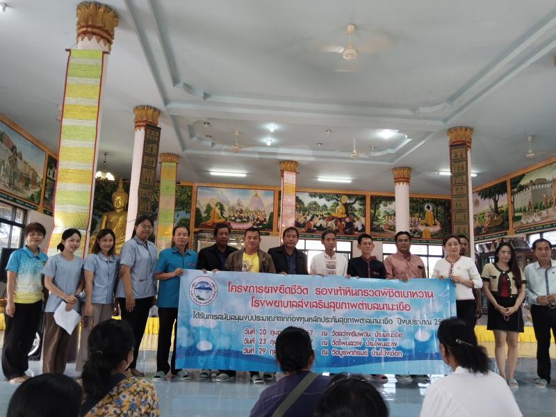 รายละเอียด : เมื่อวันที่ 20,23,29 กุมภาพันธ์2567 นายประมวล ศรีดาแก้วนายกเทศมนตรีตำบล นามะเขือพร้อมด้วยคณะผู้บริหาร สมาชิกสภาเทศบาล ผู้นำฝ่ายปกครองตำบลนามะเขือ เป็นประธานเปิดโครงการยางยึดชีวิต รองเท้าหินกรวด พิซิตเบาหวาน โดยมีวัตถุประสงค์ เพื่อให้ผู้ป่วยเบาหวาน มีความรู้เรื่องการควบคุมระดับน้ำตาลในเลือด ส่งเสริมการออกกำลังกายในผู้ป่วยเบาหวาน ลดอาการชาเท้าในผู้ป่วยเบาหวาน กลุ่มเป้าหมายคือ ผู้ป่วยเบาหวานและกลุ่มเสี่ยง จำนวน 280คน โดยได้แบ่งการจัดกิจกรรมเป็น3จุด จุดที่1วัดสว่างอัมพวันบ้านนามะเขือ จุดที่2วัดพุทธมงคลโพนสว่าง จุดที่3วัดบูรพาภิรมย์โปงเชือก คณะวิทยากรจากโรงพยาบาลส่งเสริมสุขภาพตำบลนามะเขือมาให้ความรู้ตลอดการอบรม ในครั้งนี้