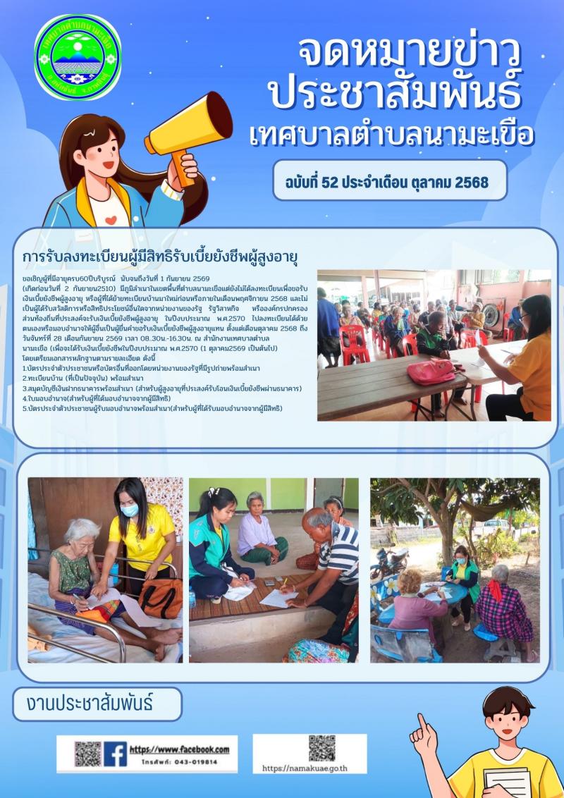 (เกิดก่อนวันที่ 2 กันยายน2510) มีภูมิลำเนาในเขตพื้นที่ตำบลนามะเขือแต่ยังไม่ได้ลงทะเบียนเพื่อขอรับ เงินเบี้ยยังชีพผู้สูงอายุ หรือผู้ที่ได้ย้ายทะเบียนบ้านมาใหม่ก่อนหรือภายในเดือนพฤศจิกายน 2568 และไม่ เป็นผู้ได้รับสวัสดิการหรือสิทธิประโยชน์อื่นใดจากหน่วยงานของรัฐ รัฐวิสาหกิจ หรือองค์กรปกครอง ส่วนท้องถิ่นที่ประสงค์จะรับเงินเบี้ยยังชีพผู้สูงอายุ ในปีงบประมาณ พ.ศ.2570 ไปลงทะเบียนได้ด้วย ตนเองหรือมอบอำนาจให้ผู้อื่นเป็นผู้ยื่นคำขอรับเงินเบี้ยยังชีพผู้สูงอายุแทน ตั้งแต่เดือนตุลาคม 2568 ถึง วันจันทร์ที่ 28 เดือนกันยายน 2569 เวลา 08.30น.-16.30น. ณ สำนักงานเทศบาลตำบล นามะเขือ (เพื่อจะได้รับเงินเบี้ยยังชีพในปีงบประมาณ พ.ศ.2570 (1 ตุลาคม2569 เป็นต้นไป)
